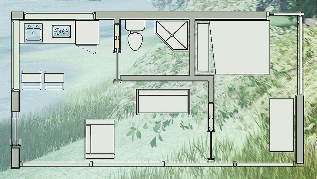 Tasked with creating an off grid tiny home under 300 cubic feet was a challenge I was happy to accept. My biggest takeaway from this design was space planning is KEY! Without using every square inch of this floor plan, it would become unusable.